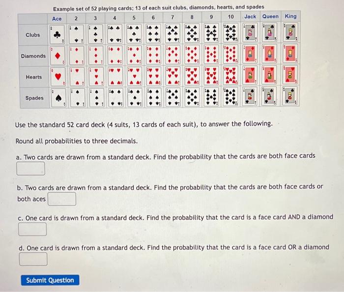 Answered As Shown Above A Classic Deck Of Cards Bartleby